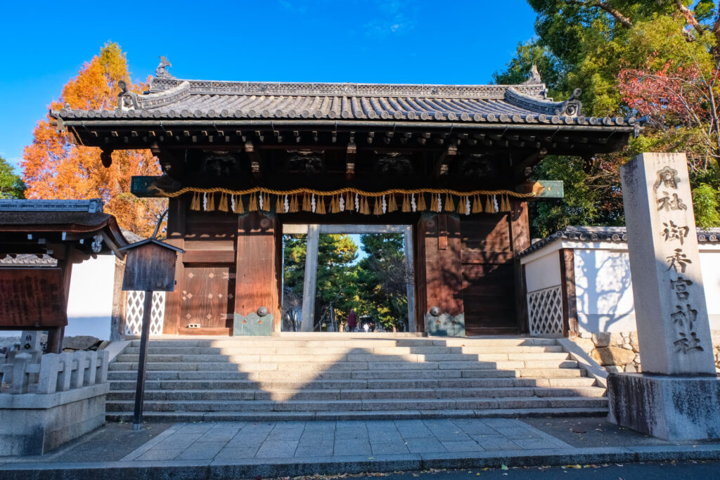 酒どころ伏見の名水スポット。境内には名水「御香水」が湧き、“飲むとたちまち病が治る”という言い伝えもあります。水をかけるとお告げが出てくる「水かけ占い」や、御香水をイメージした御朱印•御朱印帳などがあります。